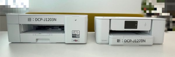 そして、「DCP-J1203N(旧モデル)」と並べて比較すると、なんだか小さくなったように見えます。