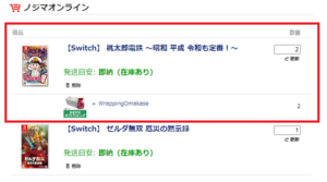 【例】 ゲームソフト2点にラッピングをご希望の場合、商品2点とラッピング2点をカートに入れます。