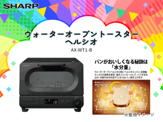 SHARP シャープ ヘルシオ ウォーターオーブントースター[焼き色5段階調整 柔らかさ3段階調整] AX-WT1-B