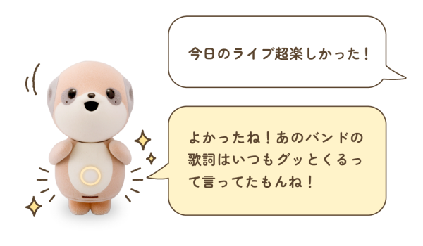 あなたの気持ちにシンクロし一緒に喜び、一緒に悲しみます。お腹のLEDや動き、声色で感情を表現します。