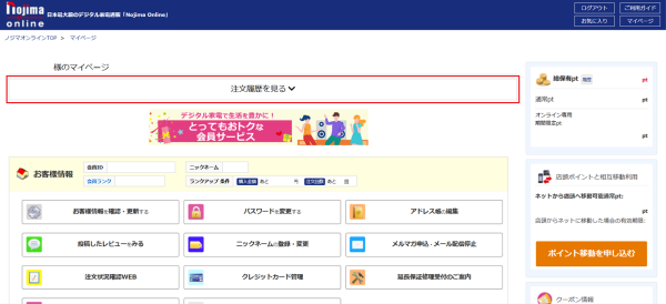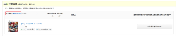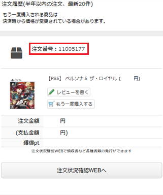 - 注文履歴から、お買い上げ時の注文番号(8桁の数字)を確認