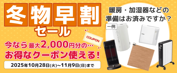 寒さ対策は万全ですか?今すぐ使える暖房家電・加湿器がお得!開催期間:2025年10月28日(火)~11月9日(日)まで